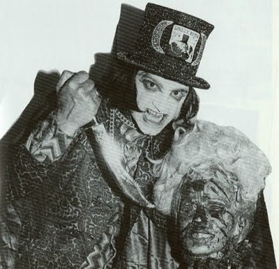 Las actuaciones en vivo de Lord Sutch eran todo un espectáculo. Solía aparecer en el escenario dentro de un ataúd, con la cara pintada de un blanco mortuorio, con capa y sombreros de copa, gritando tanto como cantando, a veces desafinado o fuera de tiempo -el vozarrón de su inspirador Jay Hawkins no fue una de sus cualidades-, acercándose al público para asustarlo, mezclando el rock and roll con la provocación teatral, siempre basada en el terror y en lo macabro. Basta con ver el video de alguna de sus actuaciones en los primeros años 60 para ver la expresión confundida de los espectadores, que no saben si reír, llorar, gritar o qué, mientras el intérprete se pasea frente a ellos, bracea con su capa y grita como si fuera un verdadero monstruo. En otros momentos del show, Sutch se mueve como un poseído, bota los atriles de los micrófonos, golpea los amplificadores, se cuelga de las vigas del techo. Una locura. Recuerden que estamos hablando de la época en que los Beatles publicaban “A Hard Day’s Night” y los Rolling Stones recién publicaban su primer elepé. En lo estrictamente musical, sus presentaciones eran una mezcla entre clásicos rocanroleros, como “Great balls of fire” de Jerry Lee Lewis, “Roll over Beethoven” de Chuck Berry, “Jeannie Jeannie” de Eddie Cochran y “Long Tall Sally” de Little Richard, con composiciones propias, como “Monster rock”, “Rock-A-Billy Madman” y “Murder in the graveyard”, donde mezclaba lo macabro con el más puro sinsentido, lo que le fue dando una fama de personaje excéntrico y, por qué no, derechamente loco.