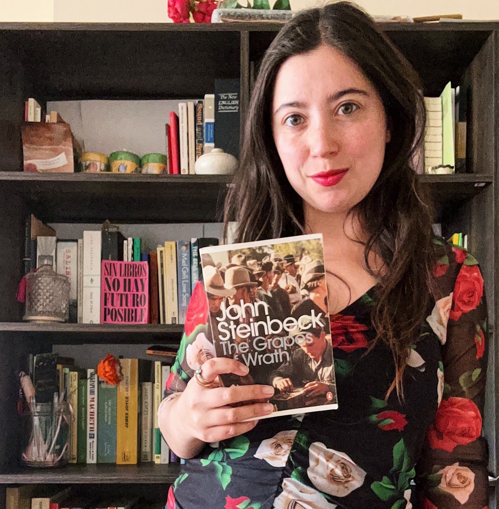 Entre esos libros, esos viajes, y esas maletas con souvenirs, llegó Las uvas de la ira. La edición era de bolsillo, con papel muy fino, más de quinientas páginas y, junto a la fotografía de unos trabajadores estadounidenses de la época, estaba ese título en inglés, amenazador y violento. The grapes of wrath. Un libro cuya historia, ambientada tras la crisis económica de Estados Unidos del 1929, muestra los procesos en los cuales los productores agrícolas son expulsados de sus tierras y forzados a emigrar a California. La historia se enfoca en la familia Joad. Trabajadores, numerosos, exiliados. Algunos de los personajes son un hijo criminal, un ex–pastor, una mujer embarazada. La novela fue transgresora para la época en que se publicó, el año 1939, y tiene una fuerte crítica social. De buenas a primeras, este libro puede que no muestre demasiado atractivo, menos para una adolescente, pero de alguna forma —y por el cariño de quién me los traía, sin cuestionar el material educativo que contenían— terminó en mis manos. Cuando lo recibí debo haber estado finalizando la enseñanza media. ¿Por qué lo postergué tanto? Si fue el libro que me voló la cabeza. Pero, como todo en la vida, tuvo sus vueltas para llegar a ser eso.