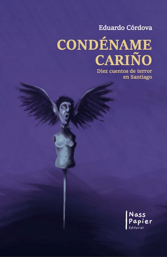 Condéname cariño. Diez cuentos de terror en Santiago es el libro debut de Eduardo Córdova, un conjunto de relatos en su mayoría fantásticos que tienen la particularidad de reunir en sus páginas a asesinos en serie, quemas de la Inquisición, diablos del folklore nortino, al chupacabras y a personajes de las leyendas del sur, pero todos situados en Santiago. El concepto de “terror” mencionado en el subtítulo, entonces, no indagará en los elementos más comunes al terror ambientado en las metrópolis, sino que incorporará elementos de otras geografías y asociados más bien a la imaginación folklórica rural, pero esta vez tomando vida en las calles y espacios que los santiaguinos recorremos todos los días.